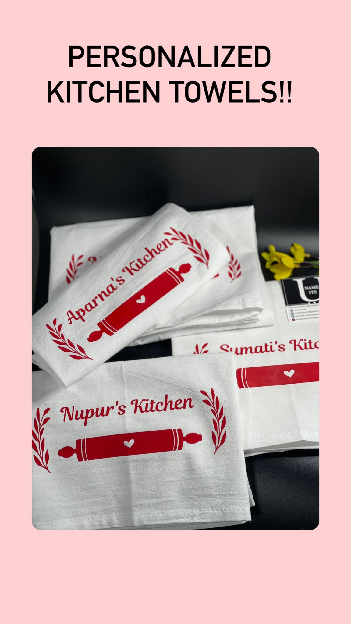 Introducing our personalized kitchen towels, where functionality meets personality! Made from high-quality, absorbent materials, these towels are perfect for any kitchen task. Add a personal touch by customizing with your name, initials, or favorite quote. Whether you're drying dishes or adding a pop of style to your kitchen decor, our personalized towels are the perfect blend of practicality and charm.