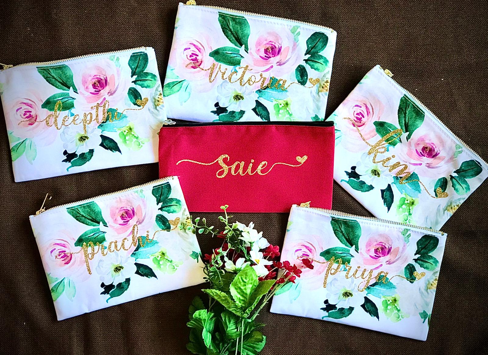These Lightweight and waterproof pouches make organizing easy. These are perfect for favors and can be personalized.